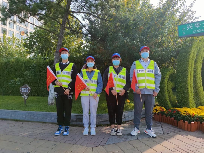 早晨7到9点是上班的高峰期,黄村西大街地铁站路口来往的行人和车辆都很多,经过交警的培训指导,华腾化工团员青年欣然值守在斑马线旁,大家不断提醒行人要走斑马线,提醒车辆要礼让行人,并搀扶行走不便的大爷大妈过马路。