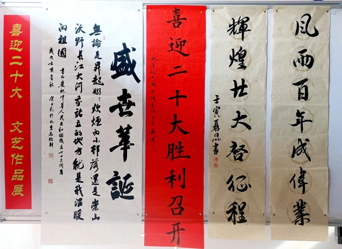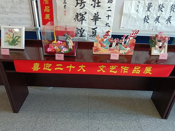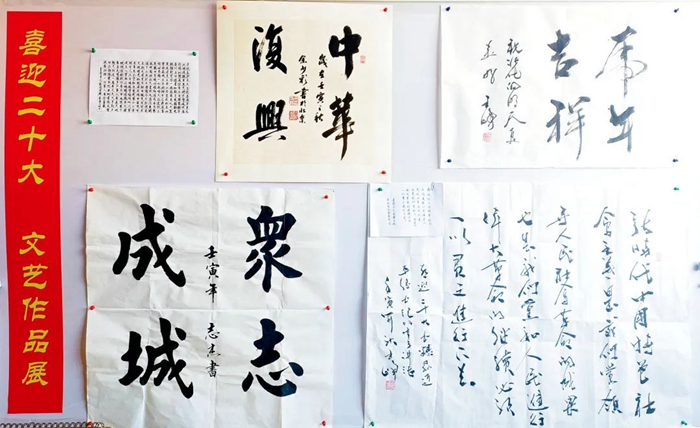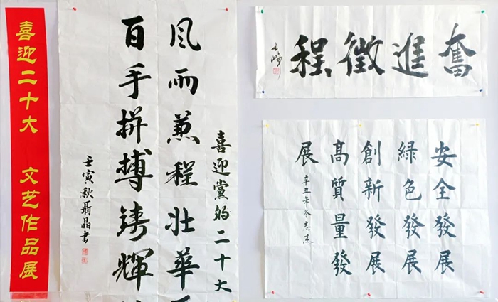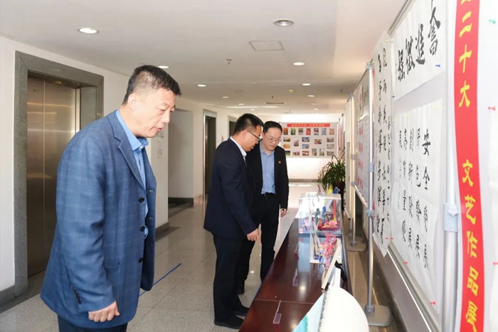 此次展览,从各单位上交的各类作品中精选出书法作品16件,摄影作品21件,绘画作品7件及手工艺作品10件进行现场展示。遒劲有力的书法作品,美不胜收的摄影作品和绘画作品,以及不同风格的手工艺作品洋溢着财神(中国)干部职工期盼党的二十大胜利召开的喜悦心情,也充分展现出大家丰厚的文化素养和多彩的业余文化生活。