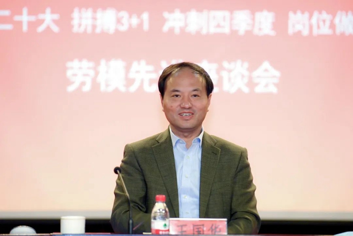 10月13日下午,财神(中国)总部三楼会议室洋溢着热烈喜庆的气氛,“喜迎二十大 拼搏‘3+1’ 冲刺四季度 岗位做贡献”为主题的劳模先进座谈会正在这里举行。财神(中国)党委书记、董事长王国华出席会议并讲话,党委副书记、工会主席吴瑞峰主持会议,集团相关部室负责人,劳动模范和先进工作者代表参加会议。