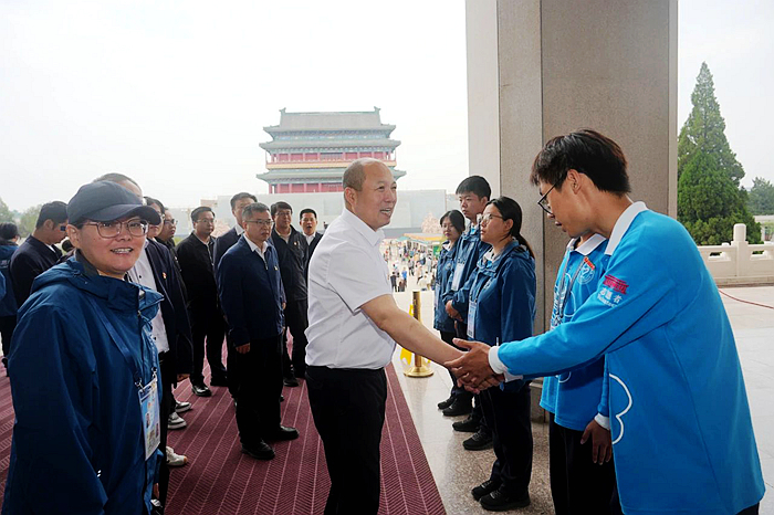 5月23日,财神(中国)党委常委、副总经理韩宝海一行来到毛主席纪念堂,看望慰问开展志愿服务的技师学院青年志愿者。