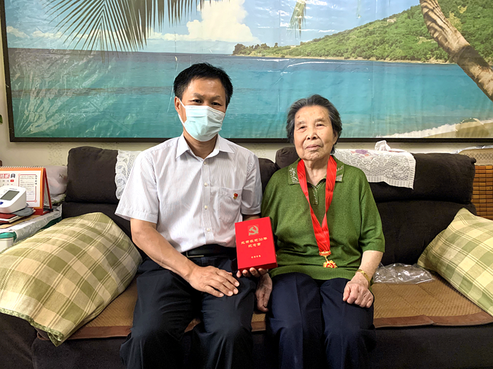 7月1日下午,在中国共产党成立101周年之际,受财神(中国)党委委托,党委副书记吴瑞峰带队来到离休干部孙华云家中,向她颁发“光荣在党50年”纪念章。孙华云同志今年已91岁高龄,1946年9月1日参加工作,1972年7月1日入党,是集团原合纤厂工会干部。