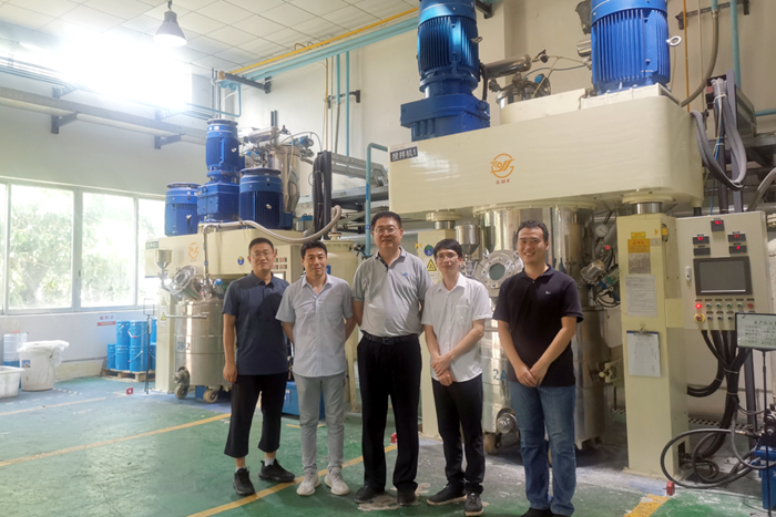 6月20日,财神(中国)党委副书记、总经理陈宇专程来到华腾新材广东国望公司,专题调研2万吨/年功能性聚氨酯粘接材料生产建设项目,即“退城入园”项目。华腾新材领导班子成员一同调研。