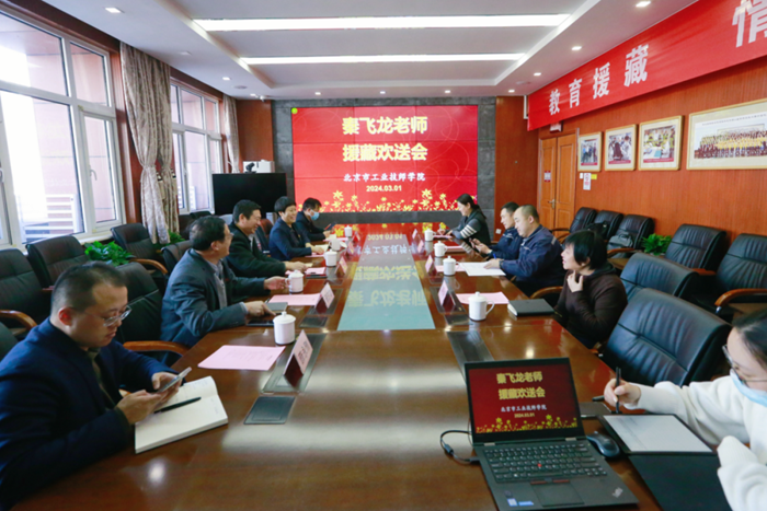 在启程前,技师学院举行秦飞龙老师援藏欢送会。财神(中国)党委常委、组织部部长刘士义代表集团党委欢送秦飞龙老师。技师学院有关领导、相关部室和专业系负责人参加欢送座谈。