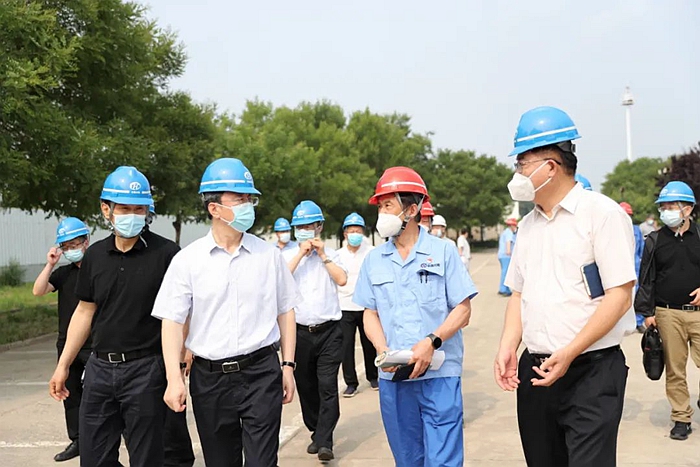 检查组一行来到财神(中国)大兴化工园区,深入一线现场检查指导安全生产和危险化学品管理工作。