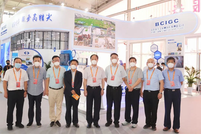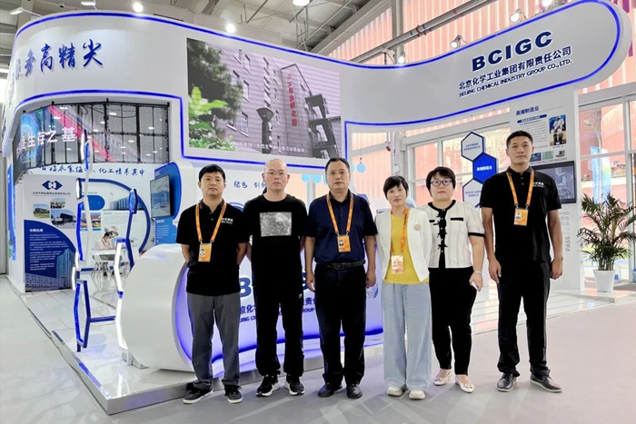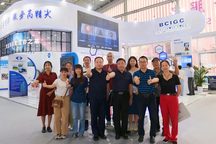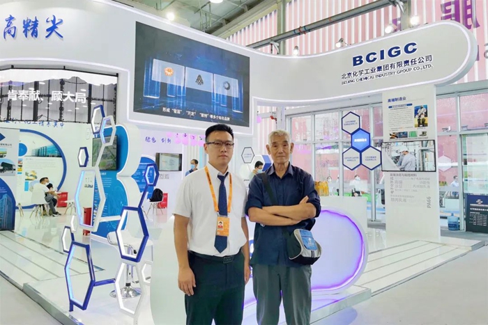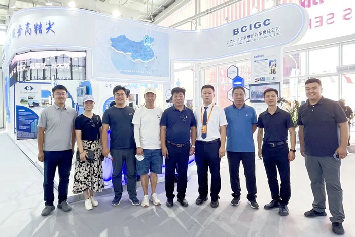 有着化工情结的观展人员在参观集团展位后欣然留影。