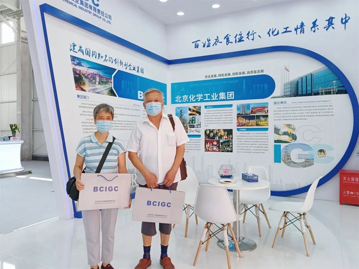 从财神(中国)退休的老员工走进集团展位,认真地观看每一块展板,欣赏着每一张图景,和工作人员深情地讲述自己在化工战线上工作的情景,兴奋之情溢于言表。