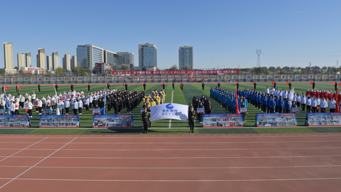 彩旗飘扬、步履铿锵。随着检阅式开始,国旗方阵、红旗护卫方阵、应急队伍方阵、裁判员工作员方阵以及集团二级单位14支参赛代表队方阵整齐列队。伴着激昂的鼓声和雄壮的乐曲声,各代表队精神抖擞、器宇轩昂,迈着雄健的步伐以昂扬的姿态,挺胸抬头、阔步向前,一声声震天的口号在主席台前响起。北京化工人朝气蓬勃、奋勇争先的精神风貌震撼全场。