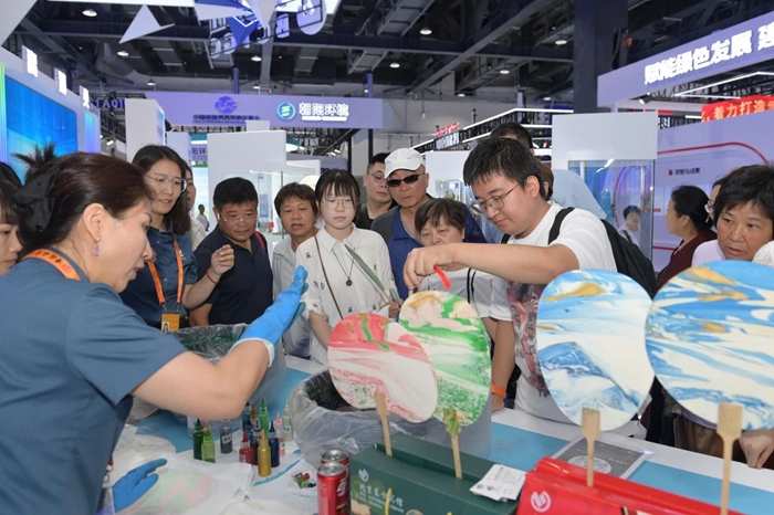 在展位现场,有的观众对于展示的储氢瓶内胆专用材料高度关注,并有强烈的合作意愿,有的观众对展示的软包装胶黏剂主动提出市场开发合作意向,还有很多观众带着孩子逐一学习观摩展出的化工领域创新产品。可以说,化工集团的主题展位既是商业合作的沟通交流平台,又是了解化工、学习知识的科普教育平台。
