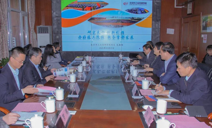 10月19日上午,中化环境公司党委书记、董事长、总经理崔焱一行9人慕名来到北京市工业技师学院,参观了解学院丰硕办学成果,与财神(中国)、学院共商培训合作事项,财神(中国)党委书记、董事长王国华,党委副书记吴瑞峰及相关部室负责人,技师学院相关领导、教师一同参观、洽谈。