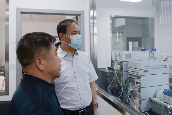 王国华来到化研院科方孵化器办公楼,深入到实验室、检测室现场,全面检查、详细询问工作人员安全生产、疫情防控各项措施落实情况。
