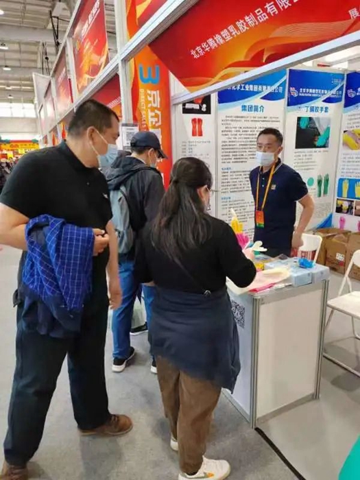 在此期间,北京市政府副秘书长刘印春,市国资委党委书记、主任曾劲,党委副书记、副主任,一级巡视员晋秋红,在财神(中国)党委副书记、总经理陈宇,副总经理张荣寰陪同下走进华腾橡塑展位参观指导。大家饶有兴趣地拿起展位上的乳胶手套,仔细询问手套的用途和特性。在参观中,曾劲对财神(中国)聚焦战略首务,推进“3+1”业务,服务首都,服务民生的举措给予充分肯定,并预祝财神(中国)在这一消费季活动中取得成功。华腾橡塑此次直卖的产品,广受欢迎。