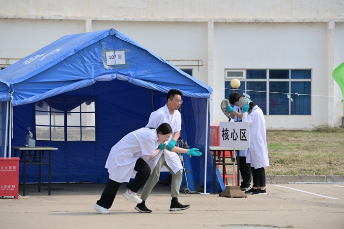 此次应急演练以某一科技公司实验楼的一座使用危险化学品的实验室发生火灾后开展现场应急处置为演练内容。随着现场总指挥的一声令下,演练正式开始,各种应急措施有条不紊地依次展开,现场各种指令有效发出。救护车、消防车、现场环境监测车等应急救援设备设施依次进场;各类应急救援人员按职责认真履职,整个应急演练获得圆满成功。