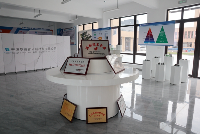 近年来,为深化“以科技研发引领产业提升”理念,华腾首研专门打造了一支由高层次技术人才组成的研发团队。该团队以市场为导向,专门设立了“高效阻燃材料、功能高分子材料、可降解材料”三个研发方向,纵向搭建起“配方剖析设计、工艺装备研究、检测分析、成型应用评价、论文专利与项目申报”等5个架构,全面推进共性技术研发和应用研究。